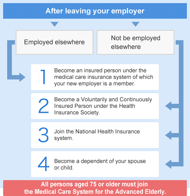 After leaving your employer, you will lose your eligibility for membership in the Health Insurance Society and must join the appropriate medical care insurance program based on your individual circumstances.